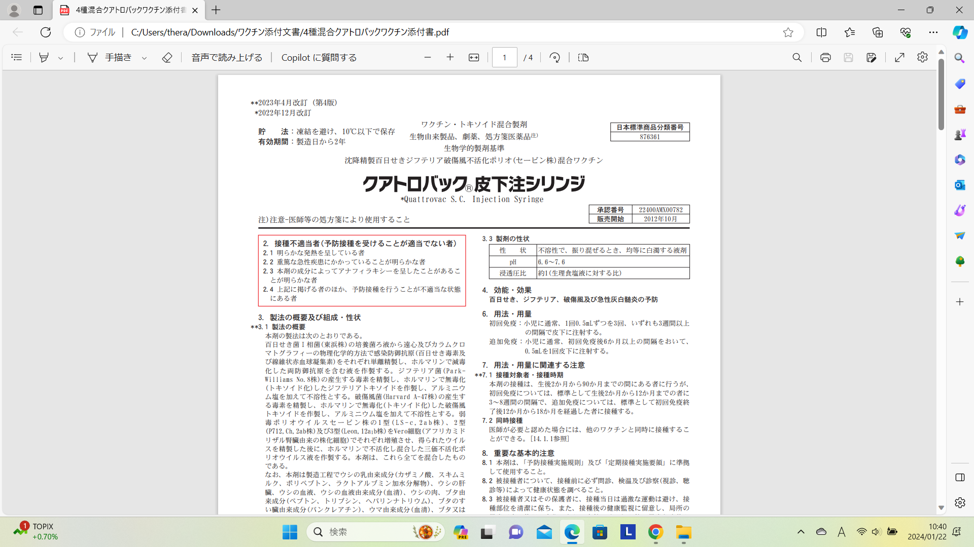 例)Infl0910-V(インフルワクチン)、DPT-IPV(4種混合ワクチン)